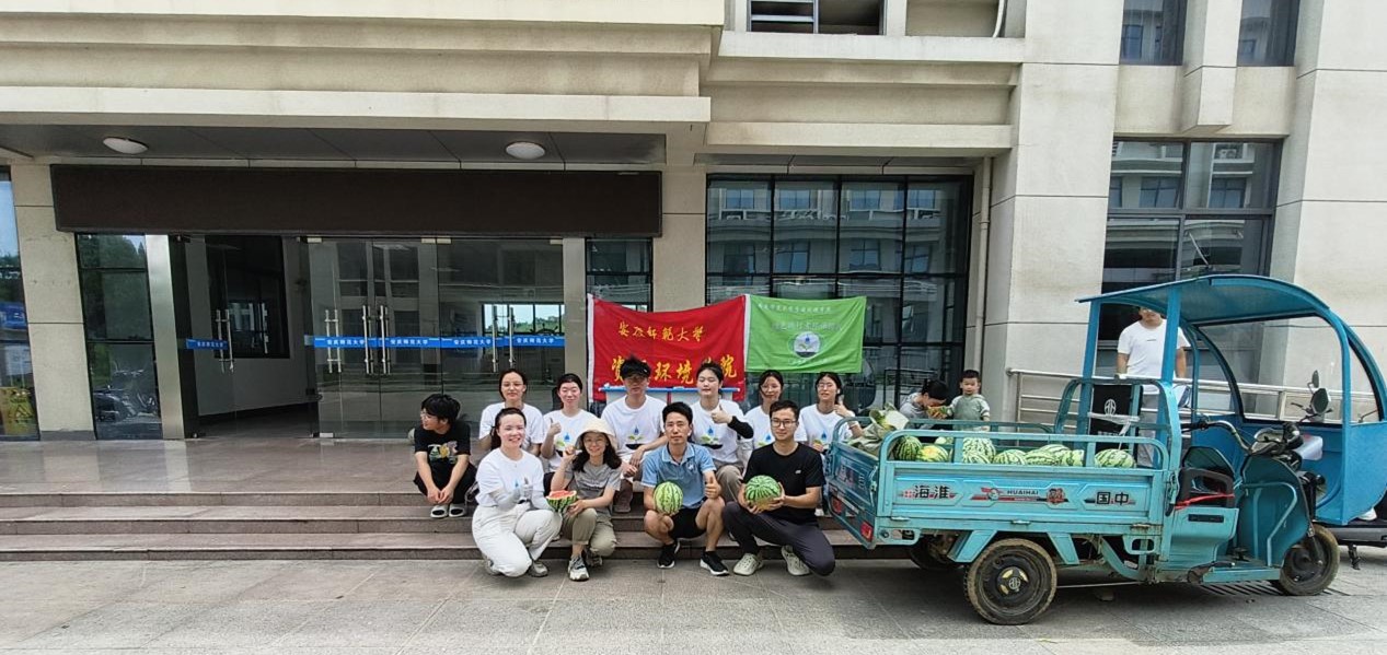 据基地负责人介绍,由于基地缺乏多元化的销售渠道,许多成熟瓜果不能得到及时售卖,最终在农田中腐烂导致大量浪费现象。“绿色践行者”环保团队负责人、环境科学专业2022级李淼与团队成员得知农田瓜果现有情况后便与指导教师联合基地决定开展“西瓜助农义卖”活动,真正落实“绿色践行者”的口号,助力农业发展。