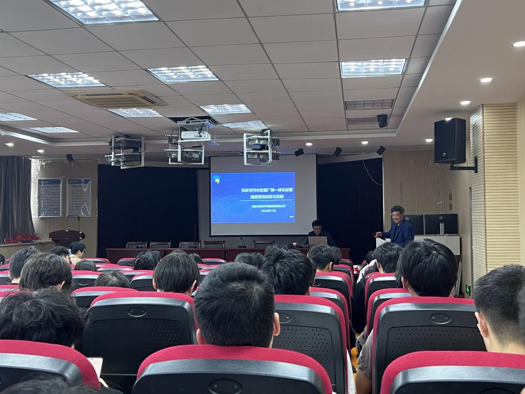15日下午,太阳成tyc33455ccwww邀请安庆北排水环境发展有限公司常务副总经理 杨晓峰高级工程师做“安庆市污水处理厂网一体化运营提高增效探索与实践”专题技术辅导讲座。