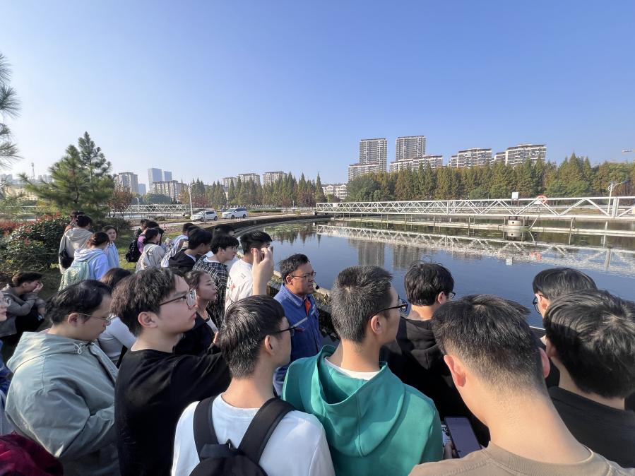 本次专业实践活动中,同学们在指导老师的带领下先后参观了安庆首创水务有限责任公司、安庆市三水厂、安庆市凤凰污水处理厂、安庆市北部新城污水处理厂等单位,通过参观实习,同学们掌握了污水处理的工艺流程及相关技术设备的使用。在实习过程中,各位实习指导老师始终和同学们一起深入工厂探究原理,熟悉现场具体污水处理设备的相关操作,保证了此次实习秩序和员工们的安全。