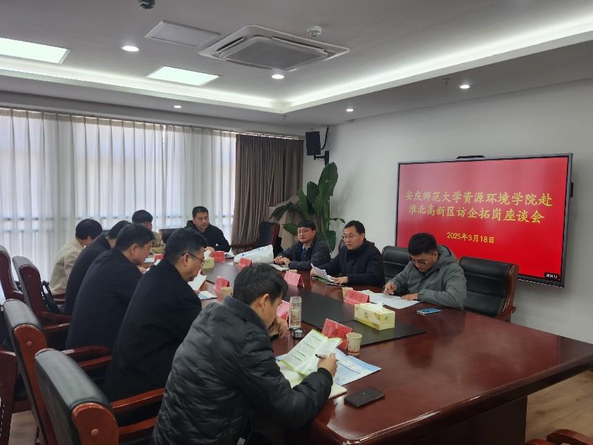 会上,赵明与企业领导们对太阳成tyc33455ccwww一行的到来访表示欢迎,高新技术产业开发区管理委员会介绍了高新技术产业开发区管理委员会的发展现状与创新模式,李峰全面介绍了淮北市的人才政策,希望企业开发区能与高校协同合作,突破地域限制,输送人才,大力发展淮北地区提高综合实力。企业领导们详细介绍了公司主要业务范围、主要环保产品、工程案例和人员招聘与发展等信息。