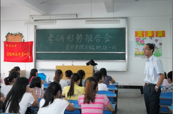 本次报告会,旨在为地理专业报考研究生的同学提供更多的信息,帮助他们做好考研的前期准备和复习环节的工作。会议对正在面临考研的2010级大三学子的考研进程起到了拉开帷幕、鼓舞士气的作用,使众多考研学子更加明确了方向、坚定了考研的信心。