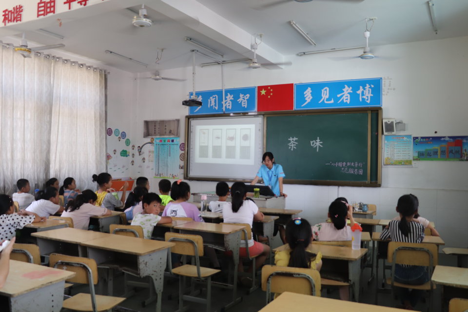 “小朋友们,你们了解茶艺的形成过程吗?”“你们想知道茶的分类吗?”“你们想知道如何品茶吗?”“想!”同学们嘹亮的声音从教室里传了出来 。为了让孩子们深入了解茶艺文化,志愿者老师给员工们详细介绍了有关茶的诗句、故事、分类以及功效。
