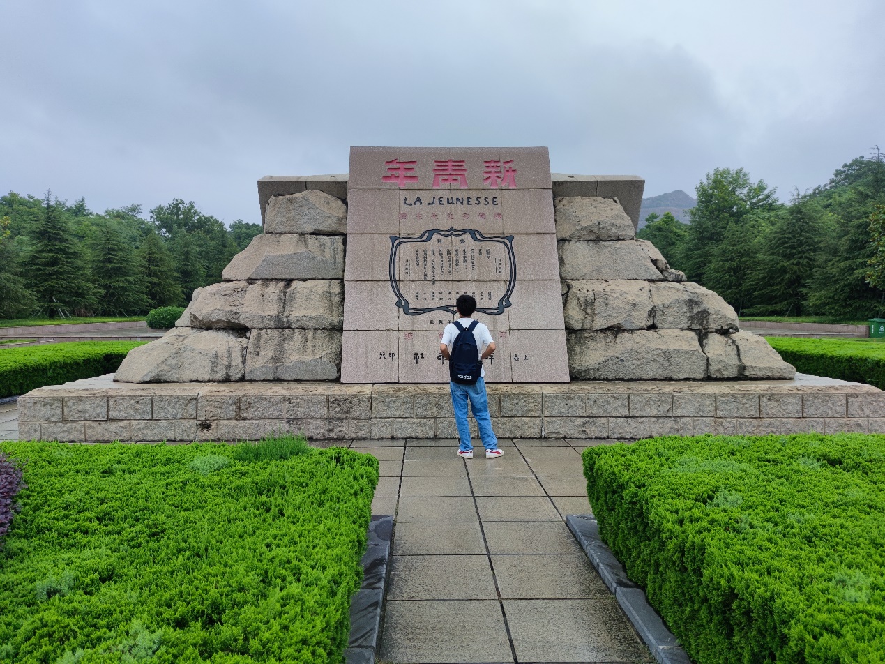 穿过仲甫路,同学们进入了独秀园,在这里,他们被各类浮雕所吸引,继续深入其中,巨大的《新青年》雕塑得到了所有人的关注。经了解,《新青年》雕塑是目前最大的书雕作品,它的正面即为该杂志封面,活动负责人凌康洁表示:“陈独秀先生创办的《新青年》杂志宣传民主与科学,推进了中国现代化的历史进程,其中陈独秀先生提出的对青年人的六条愿望更是唤醒了一代中国青年,通过参观学习,更加切实感悟五四先贤伟大的爱国主义精神。”之后同学们来到陈独秀墓前鞠躬默哀,表达了对陈独秀先生的敬仰和怀念之情。