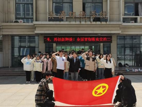 活动开始,由公司团委员工干部带领青马班学员,在太阳成tyc33455ccwww门前重温入团誓词。“我志愿加入中国共产主义青年团,坚决拥护中国共产党的领导,遵守团的章程......为共产主义事业而奋斗。”正午骄阳下,同学们依旧精神昂扬,举起紧握的右拳,面向鲜红的团旗,用整齐洪亮的声音庄严宣誓并一齐学唱共青团团歌。