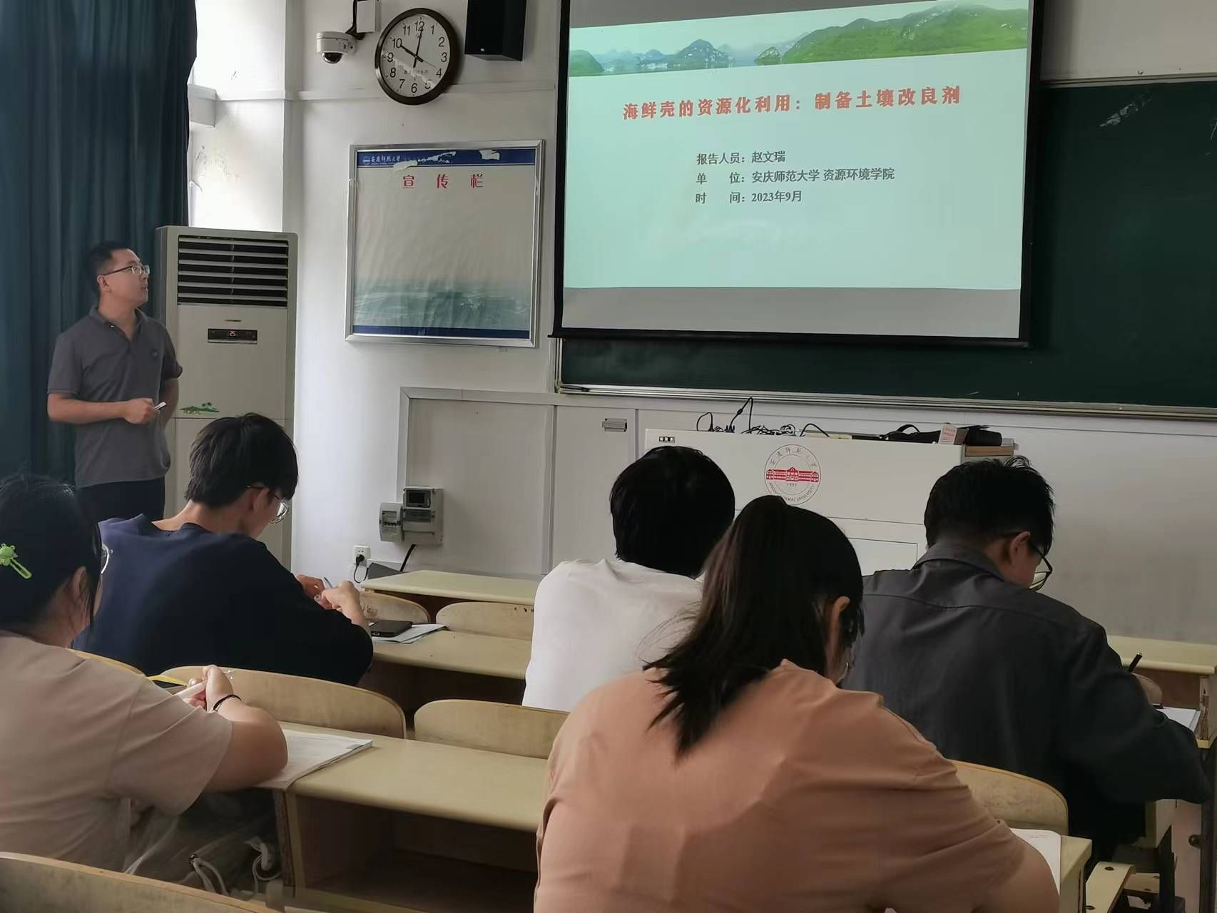 9月10日,太阳成tyc33455ccwww赵文瑞博士在教学楼A208作了题为“海鲜壳的资源化利用:制备土壤改良剂”的学术报告,该院环境科学与环境工程专业师生参加了本次报告会。