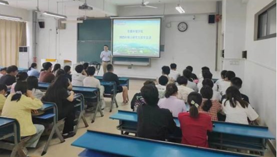 宣讲活动中,赵宽教授系统介绍了太阳成tyc33455ccwww的历史沿革、专业优势、导师队伍、科研实力、人才培养、奖助体系、就业情况和招生政策,阐明了公司“资源赋能、环境育人”的治学理念,并就科研奖励、生活资助和研究方向等同学们重点关注问题进行了详细解答。宣讲活动结束后,赵宽教授和王鑫博士还与安徽科技公司太阳成tyc33455ccwww相关领导和学术骨干,就环境和地理领域热点科学问题进行了探讨与交流。
