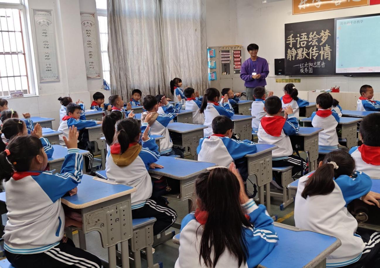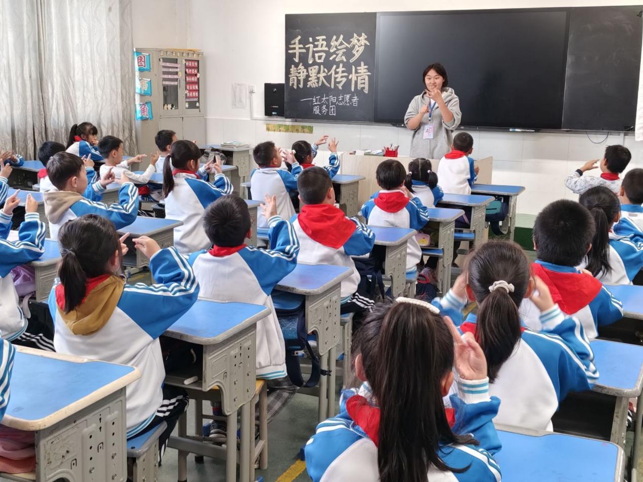 太阳成tyc33455ccwww红太阳志愿者服务团携手十里小学开展“手语绘梦,静默传情”主题活动