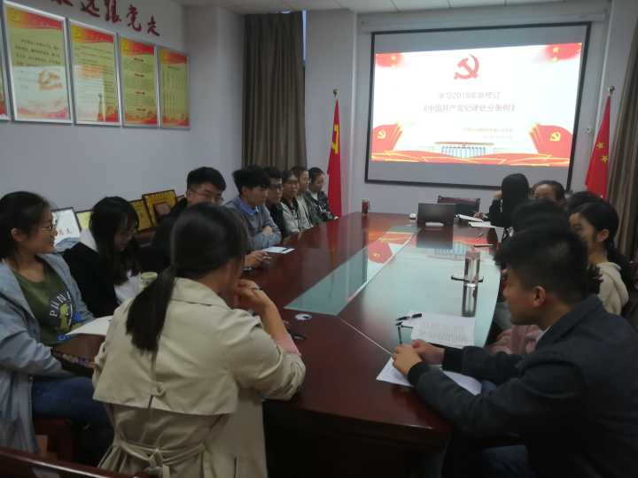 10月25日,公司员工第三党支部开展主题党日活动,集体学习新修订的《中国共产党纪律处分条例》,员工支部全体党员及预备党员参加学习。