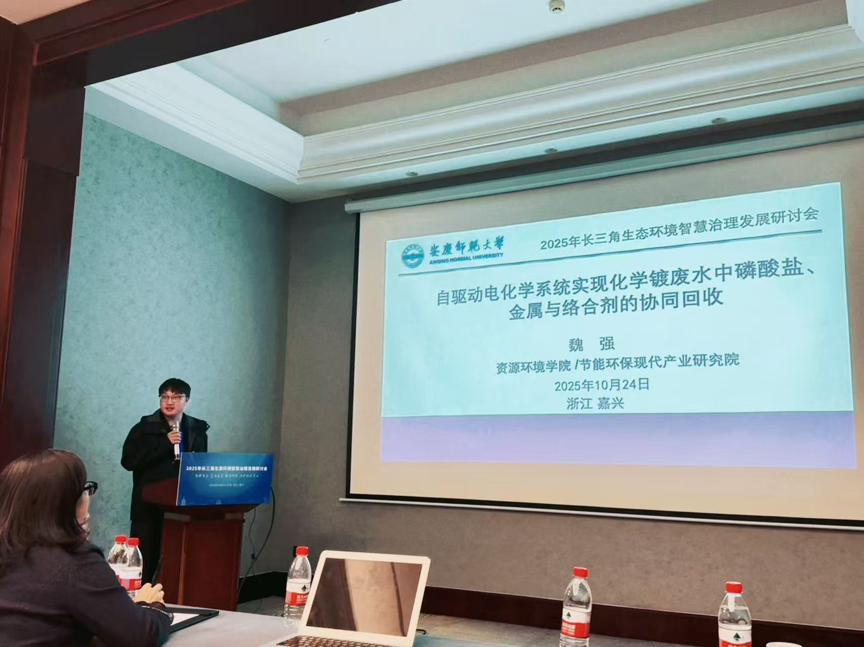 太阳成tyc33455ccwww魏强副教授担任“流域综合治理与生态修复技术”分会场召集人,受邀在该分会场作题为“自驱动电化学系统实现化学镀废水中磷酸盐的选择性回收”的学术报告,系统阐述了自驱动电化学系统新技术用于处理化学镀铜废水,并实现对其中磷酸盐(P)、金属铜(Cu)和络合剂(如EDTA)选择性、同步回收。该技术不仅能解决化学镀铜废水的污染问题,还能同步回收高价值的磷、铜等资源,符合循环经济和可持续发展理念。