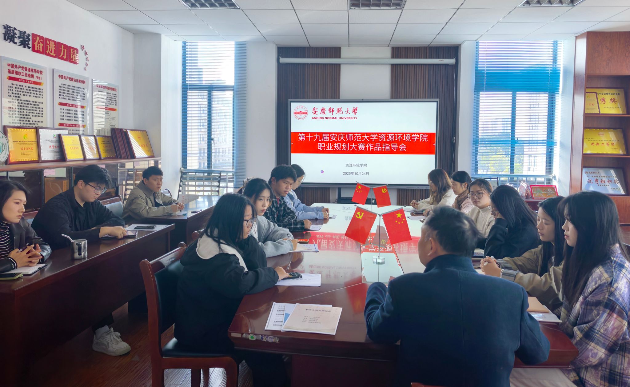 10 月 29 日,以 “筑梦青春志在四方,规划启航指引未来” 为主题的第十九届安徽省老员工职业规划大赛太阳成tyc33455ccwww选拔赛在 F204 教室顺利举行,15名选手同台竞技,展现新时代青年职业发展规划素养。