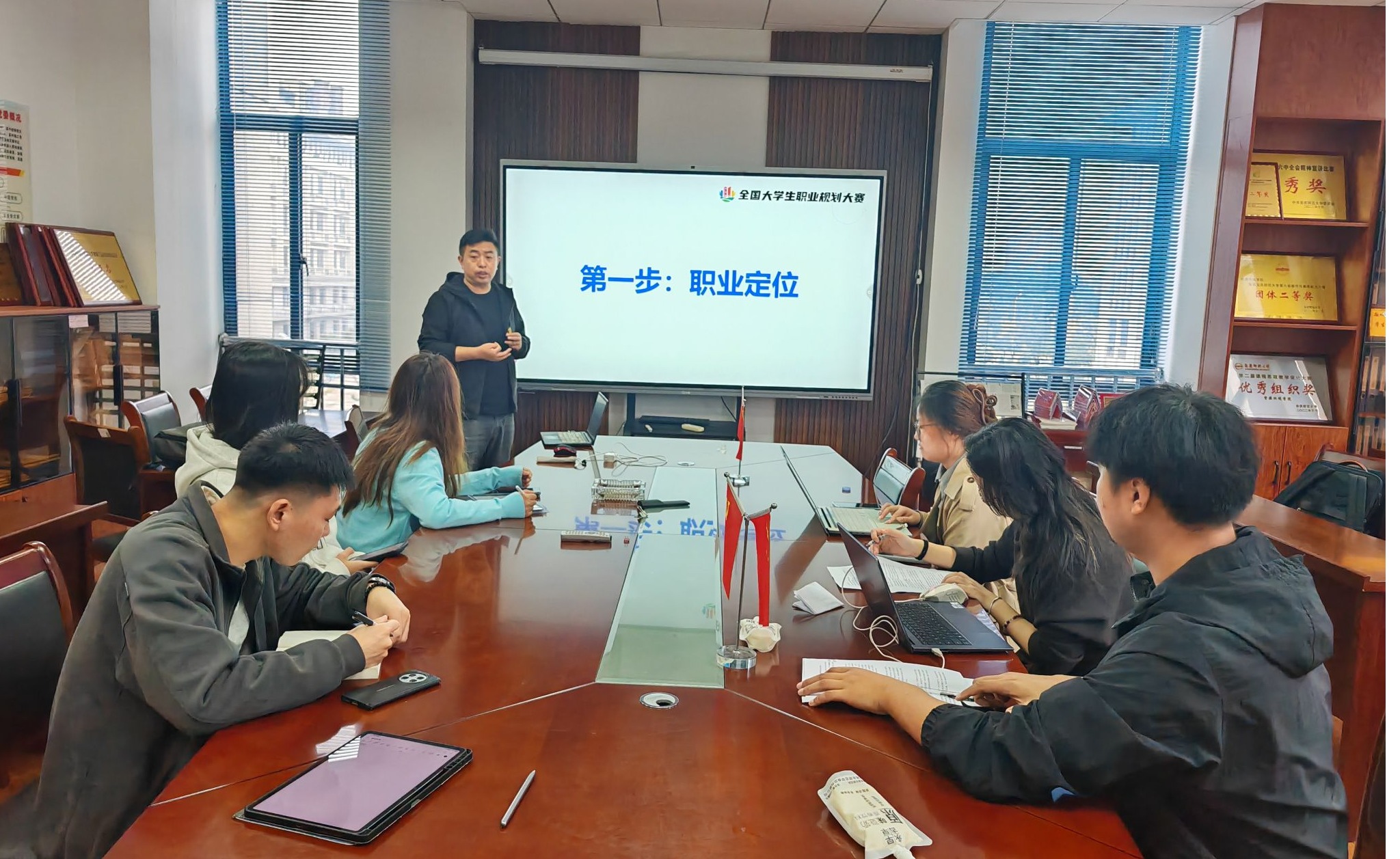 公司领导高度重视此次大赛,将职业规划赛事作为深化就业育人、提升学子就业核心竞争力的重要抓手,多次指导公司备赛,为备赛工作提供全方位保障。赛前,公司动员、指导组建由专业教师、辅导员构成的指导团队,从职业目标合理性、规划路径可行性、文本撰写规范性等维度,对参赛员工的规划方案予以优化指导;举办院级选拔赛,精心遴选 6 名优秀员工,参加职业规划大赛专项培训,邀请合肥致行树教育科技有限公司职业生涯规划师吴遇为员工专项辅导,为备赛奠定扎实基础。